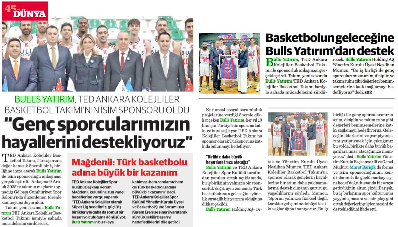 Bulls Yatırım, TED Ankara Kolejliler Basketbol Takımının isim sponsorlu oldu.