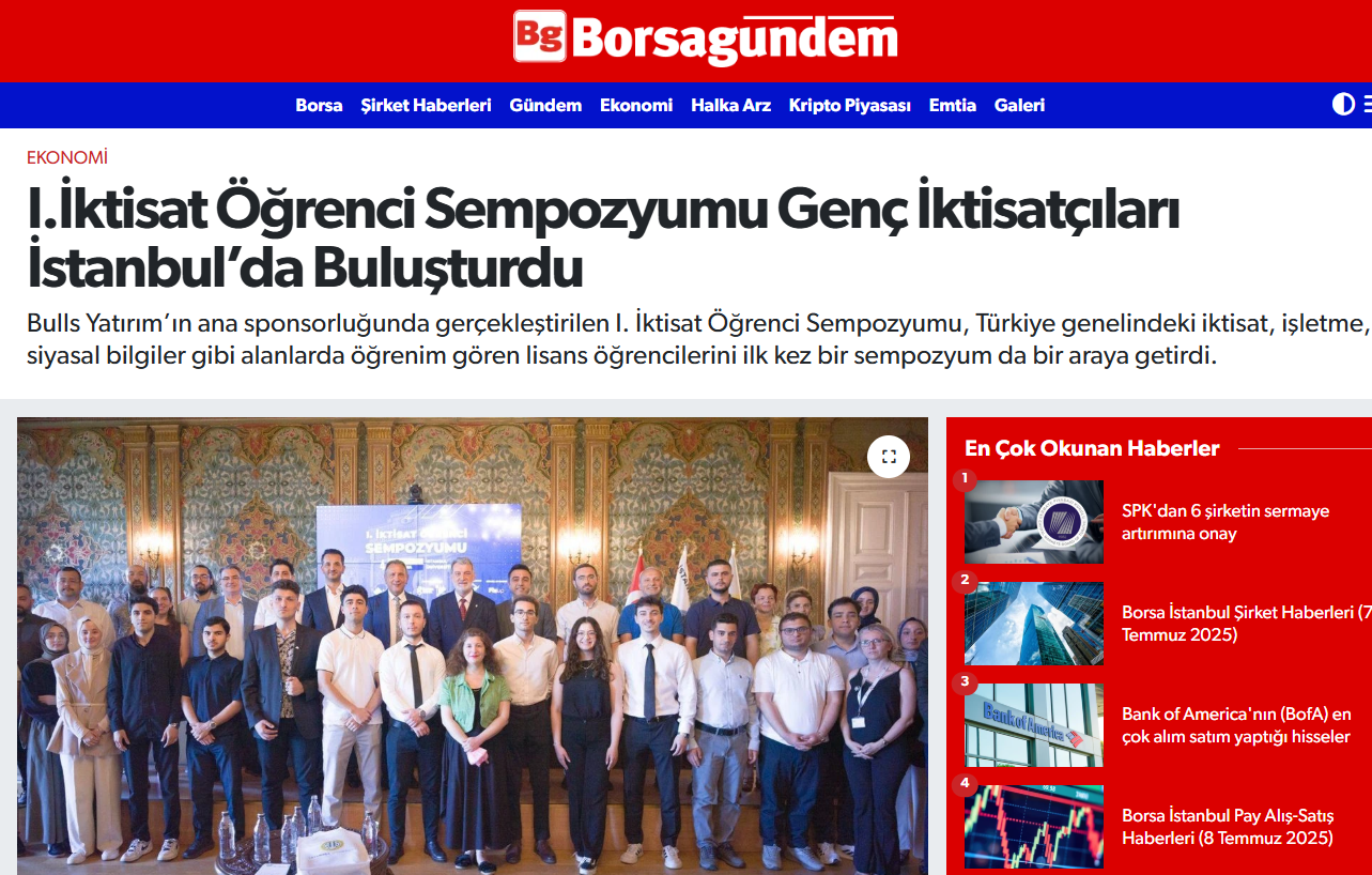İstanbul Üniversitesi İktisat Fakültesi ev sahipliğinde, İKDER iş birliği ve Bulls Yatırım’ın sponsorluğunda düzenlenen I. İktisat Öğrenci Sempozyumu, Türkiye genelindeki lisans öğrencilerini İstanbul’da bir araya getirdi. Ekonomiden dijitalleşmeye, toplumsal eşitsizliklerden sürdürülebilirliğe kadar geniş bir yelpazede projeler sunulan sempozyum, genç iktisatçılara akademik platformda kendilerini ifade etme fırsatı sundu.