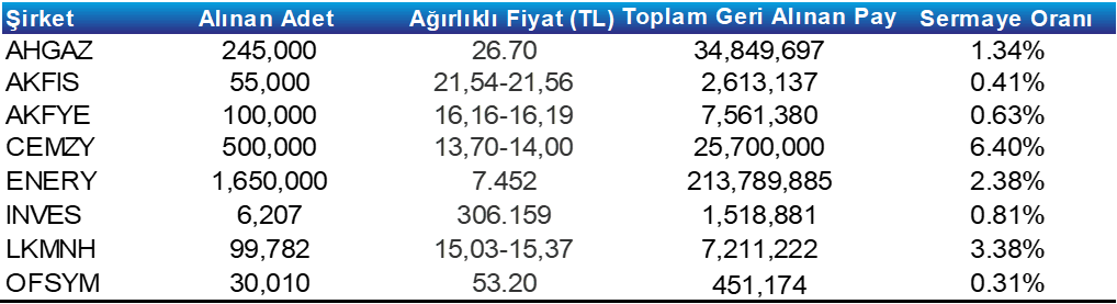 Pay Geri Alım Tablosu