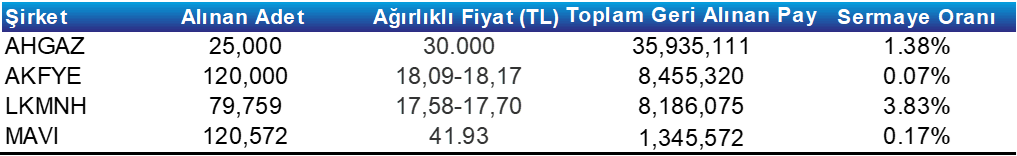 • Migros <MGROS TI> Şirket, Temmuz ayında 17 Migros, 2 Migros Jet, 5 Macrocenter, 1 Mion, 1 Petimo mağazası ve 1 dağıtım merkezi olmak üzere toplam 26 yeni mağaza açtı. Toplam mağaza sayısı 31 Temmuz 2025 itibarıyla 3.702 oldu. (Kaynak: KAP)