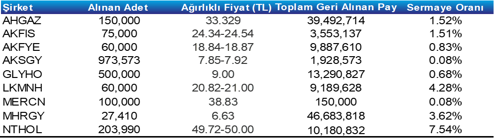 Pay Geri Alım Tablosu