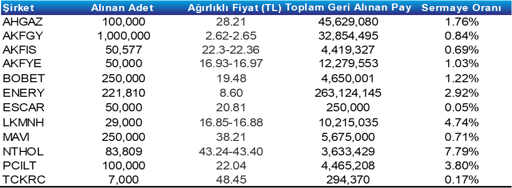 Pay Geri Alım Tablosu