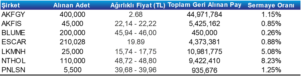 Pay Geri Alım Tablosu