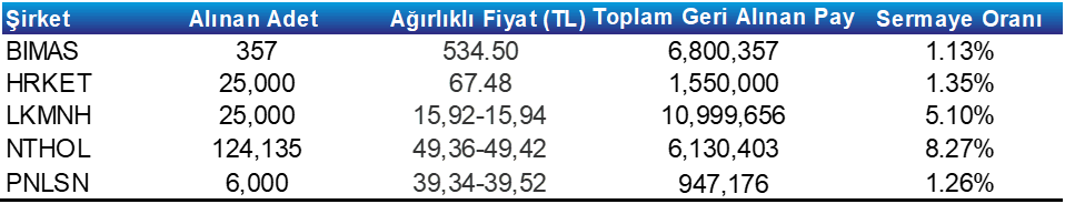 Pay Geri Alım Tablosu
