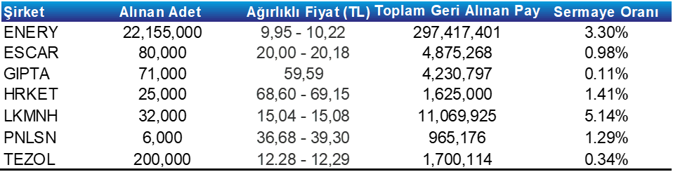 Pay Geri Alım Tablosu