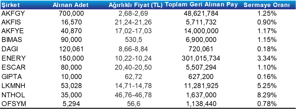 Pay Geri Alım Tablosu