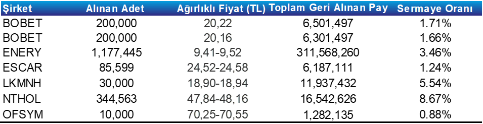 Pay Geri Alım Tablosu