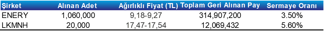• Egeyapı Avrupa GYO <EGEGY TI> Şirket, İstanbul Eyüpsultan Göktürk'teki konut projesi için yapı ruhsatlarının alındığını, ayrıca Cer İstanbul projesi kapsamındaki T1 Blok ve ilgili çevre düzenleme işlerinin kısmi geçici kabulünün 29 Aralık 2025 tarihinde onaylandığını açıkladı. (Kaynak: KAP)