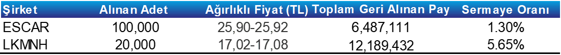 • Alfa Solar Enerji <ALFAS TI> Şirket, Ecogreen Elektrik Enerji Üretim’den güneş paneli satışına yönelik yaklaşık 16 mn ABD doları tutarında yeni sipariş aldığını açıkladı. Sözleşme tutarı şirketin son 12 aylık cirosunun %10,7’sine denk gelmektedir. (Kaynak: KAP)