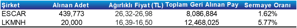• Dün yayımlanan SPK bültenine göre Ata Turizm’in halka arzı onaylandı. Büyük Şefler Gıda <BIGCH TI> ve Kızılbük GYO <KZBGY TI> için iç kaynaklardan bedelsiz sermaye artırımı başvurularının SPK tarafından onaylandığı açıklandı. (Kaynak: SPK Bülteni)