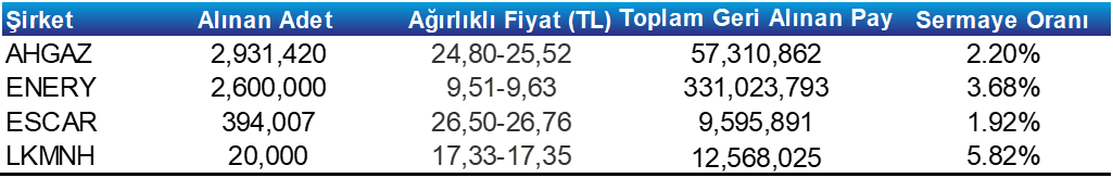 • Pegasus Esas Holding’in Pegasus sermayesindeki paylarının %10’una karşılık gelen 50 mn TL nominal payın borsada işlem gören niteliğe dönüştürülmesi amacıyla hazırlanan pay satış bilgi formunun SPK tarafından onaylandığı açıklandı. (Kaynak: SPK Bülteni)
