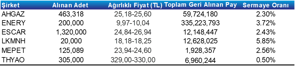 • Balsu Gıda <BALSU TI> Şirket, hammadde fiyatlarındaki artış nedeniyle yılın ilk yarısında ertelenen talebin Ocak’tan itibaren geri dönmeye başladığını ve 3Ç-4Ç’te satışlarda toparlanma beklediğini açıkladı. Bu kapsamda 1 Ocak-15 Şubat döneminde 4.425 mn TL yeni satış anlaşması yapıldı. Ayrıca aktif karbon projesinde verimlilik odaklı yeni üretim sistemlerine geçiş çalışmaları başlarken, Şili/Maule kırma tesisinde montaj %90+ seviyeye ulaştı ve Mart’ta devreye alma planlanıyor. (Kaynak: KAP)