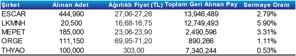 Pay Geri Alım Tablosu