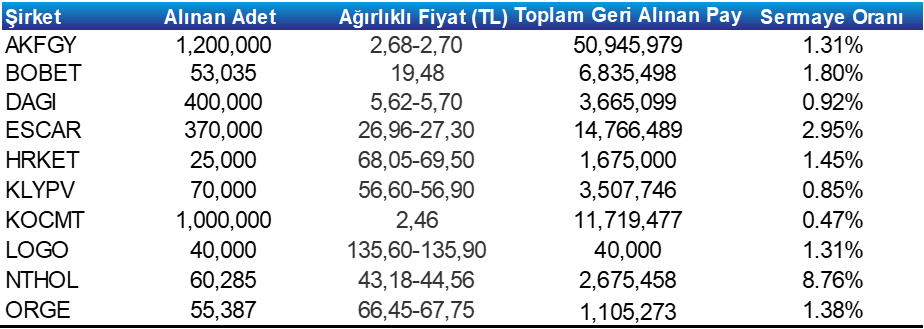 - Kızılbük GYO <KZBGY TI> Şirket, Marmaris’teki Sinpaş Kızılbük Thermal Wellness Resort projesinde Şubat 2026 döneminde 261 adet devre mülk satış sözleşmesi imzalandığını ve KDV hariç toplam tutarın 254,9 mn TL olduğunu açıkladı.