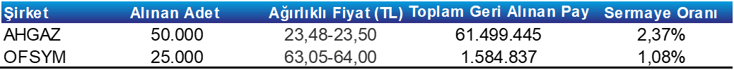 Pay Geri Alım Tablosu