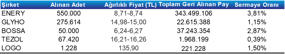 Pay Geri Alım Tablosu