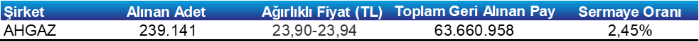 • Avrupakent GYO <AVPGY TI> Şirket, Avrupa Konutları Güneşli projesinde yer alan 24 adet bağımsız bölümü, düzenli kira geliri elde etme stratejisi kapsamında toplam 1.950 mn TL bedelle satın alma kararı aldığını açıkladı. (Kaynak: KAP)