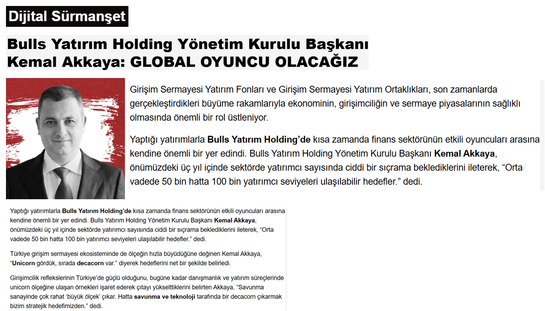 Bulls Yatırım Holding, yaptığı yatırımlarla kısa zamanda finans sektörünün etkili oyuncuları arasına kendine önemli bir yer edindi.