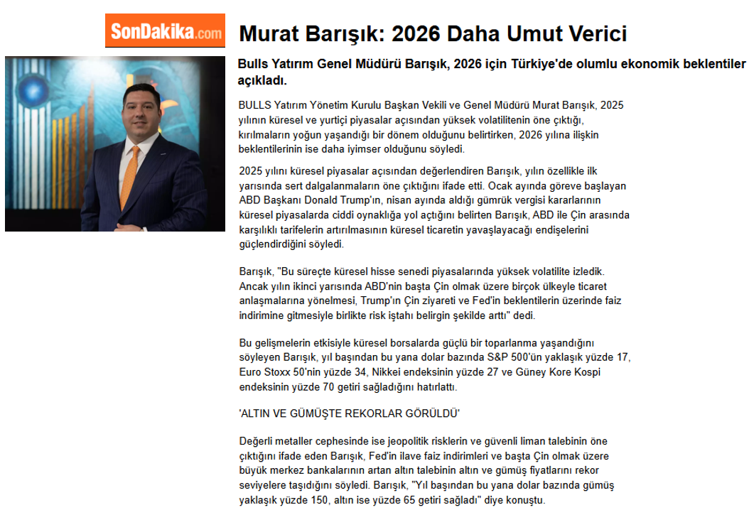 31.12.2025Murat Barışık: 2026 Daha Umut Verici Son DakikaHaberi okumak için tıklayın Şimdi Hesap Açın