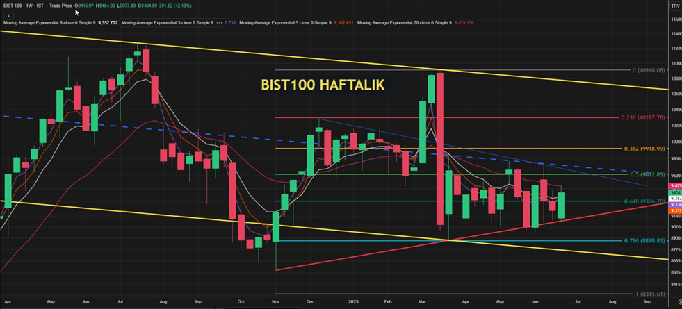 - Haftalık grafik görünümünde, 9.480 seviyesi ilk önemli direnç konumunda takip etmekteyiz. Bu eşik aşılabilirse, sırasıyla 9.610 ve 9.720 seviyeleri direnç noktaları olarak izlenebilir. Geri çekilmelerde 9.310 - 9.330 aralığı güçlü bir destek bölgesi olarak öne çıkmaktadır.