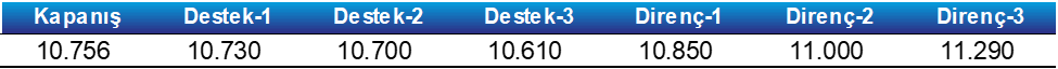 - Geri çekilmelerde 10.730 - 10.700 bandını önemsiyoruz. Bu seviyelerin altında zayıf görünümün devam etmesi beklenmektedir.