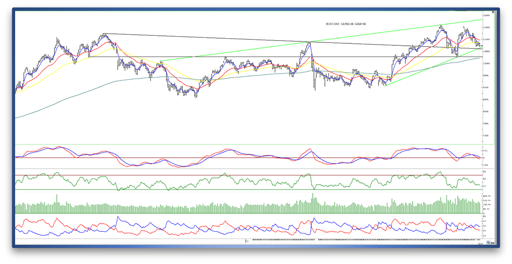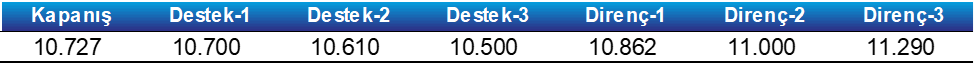 - Geri çekilmelerde satışların 10.700 destek bölgesinden karşılandığını görmekteyiz. Kısa vadede 10.700 destek bölgesini önemsemekteyiz. Bu seviyelerin altında zayıf görünümün devam etmesi beklenebilir.