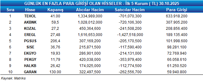 - Para girişi, ilk 5 kurumun alış ve satış hacimlerinin toplamıyla belirlenir.