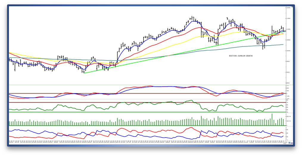 - Yukarı yönlü hareketlerde ise 11.000 seviyesi ilk direnç olarak izlemeye devam edeceğiz. Sonraki önemli direnç seviyeleri 11.120 ve 11.290 olarak takip edilebilir.