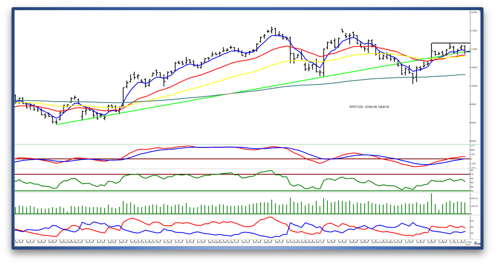 - Endekste güçlenme hareketinden söz edebilmemiz için 11.000 seviyesinin üzerinde kapanışlar görülmesi ve endeksin bu seviyenin üzerine yerleşmesi gerektiğini düşünüyoruz. Bu seviyenin üzerinde alımların artmasıyla ilk etapta 11.150 seviyesi gündeme gelebilir. Sonraki önemli direnç bölgesi olarak ise 11.290 seviyelerinin hedeflenebileceğini tahmin ediyoruz.