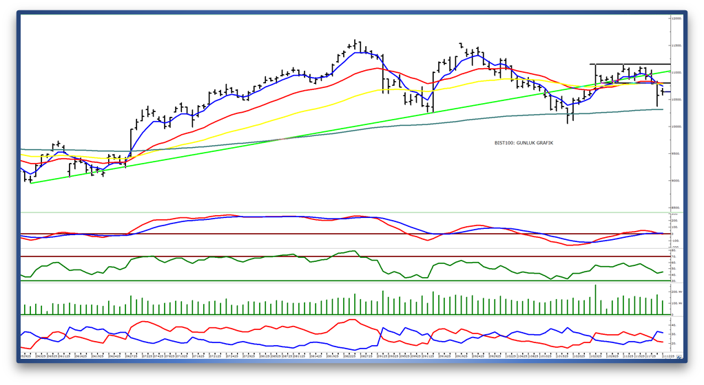 - Endeks, kısa vadeli yönde izlediğimiz üssel hareketli ortalamaların altında seyretmekte olup, fiyatların bu ortalamalardan uzaklaşması ve altında kapanış yapmış olması zayıf görünümü teyit etmektedir. Teknik açıdan güçlenmeden söz edebilmek için endeksin 10.800 seviyesinin üzerinde tutunması gerektiğini düşünüyoruz. Bu seviyenin üzerinde kalıcılık sağlanması durumunda 11.000 seviyesi yeniden gündeme gelebilir. Sonraki önemli direnç olarak ise geçmişte yatay trend bölgesi olarak çalışan 11.150 seviyesi öne çıkmaktadır.
