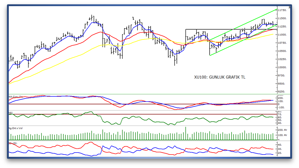 - Teknik açıdan bakıldığında, Endeksin kısa vadeli yükselen kanal görünümünü koruduğu görülmektedir. Olası geri çekilmelerde 11.250 puan seviyesini önemli bir destek olarak takip ediyoruz. Bu seviye, geri çekilmelerde tepki alımlarının gelebileceği bölge olarak izlenebilir. Teknik bakımdan 11.250’nin aşağı yönlü kırılması durumunda ise geçmişte destek olarak test edilen 11.150 puan seviyesi gündeme gelebilir.