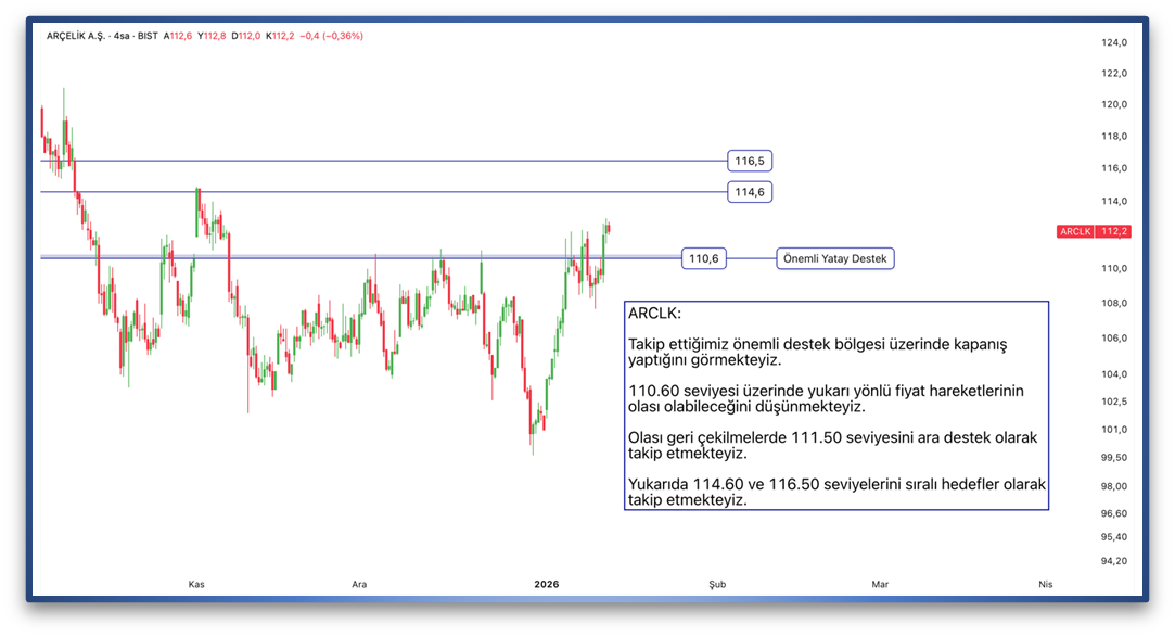 Fiyatın 4.380 seviyesi üzerinde sağladığı kalıcılık ve istikrar ile birlikte yukarıda sıradaki hedefimize de geldiğini görmekteyiz. Bu noktada fiyatın yükseliş hareketine devam etmesi ve momentumunun bozulmaması için 4.500 - 4.526 bölgesi üzerinde tutunabilmesi gerektiğini düşünmekteyiz. Fiyatın yükseliş momentumuna devam etmesi halinde yukarıda 4.718 seviyesini sıradaki hedef olarak takip etmekteyiz.