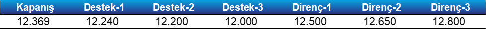 - Teknik açıdan bakıldığında, yukarı yönlü hareketlerde 12.500 - 12.650 bandını direnç bölgesi olarak izliyoruz.