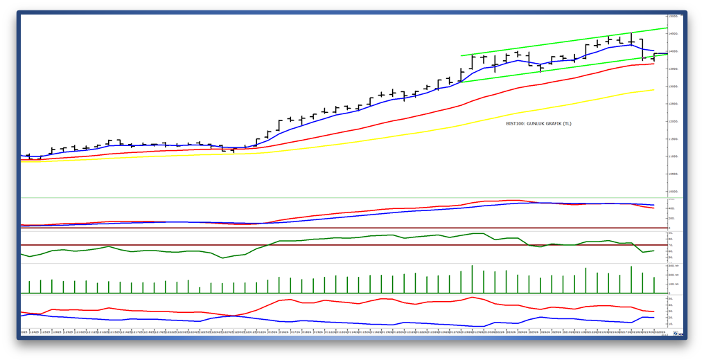 - Olası geri çekilmelerde 13.730 seviyesini kritik destek olarak izliyoruz. Geçtiğimiz hafta görülen geri çekilmede satışların bu seviyelerde karşılandığını takip etmiştik. Bu desteğin kırılması halinde 13.650 ve 13.400 seviyeleri bir sonraki destek bölgeleri olarak öne çıkıyor.