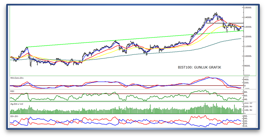 - Olası geri çekilmelerde ise 13.000 puan seviyesi ile kısa vadeli görünüm açısından önem verdiğimiz 5 günlük üssel hareketli ortalamanın bulunduğu 12.905 seviyesi destek noktaları olarak takip ediyor olacağız.