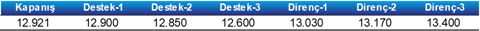 - Olası geri çekilmelerde ise 12.900-12.850 seviyelerini kısa vadeli destek bölgeleri olarak izlemeye devam ediyoruz.