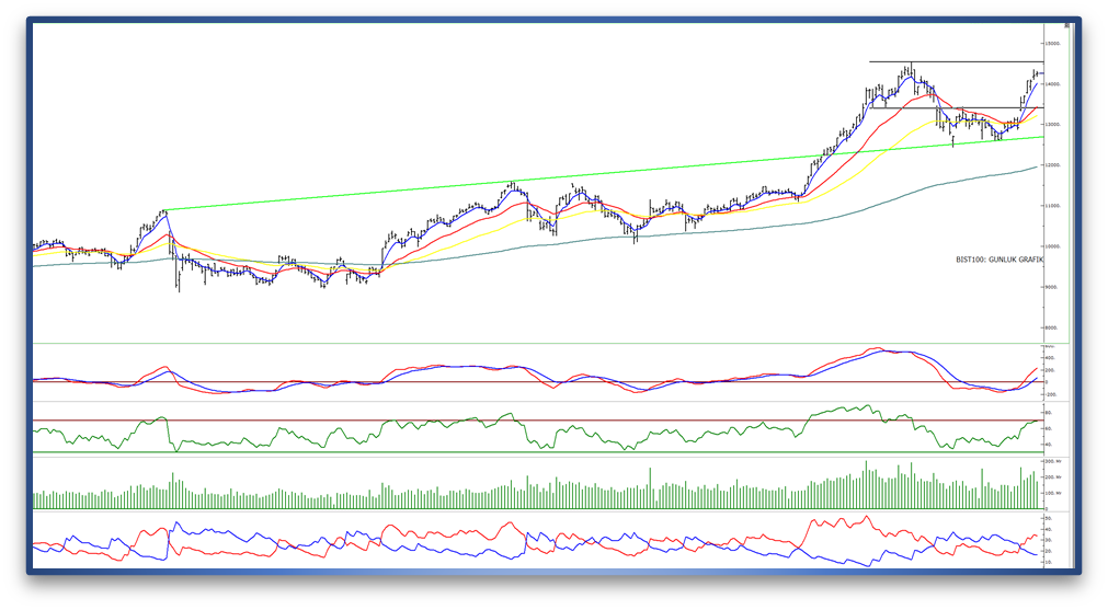 - Geri çekilmelerde, kısa vadeli destek konumunda izlediğimiz 14.100 seviyesi ile kısa vadeli yön açısından takip ettiğimiz 5 günlük üssel hareketli ortalama seviyesi olan 14.013 seviyesini önemli buluyoruz.