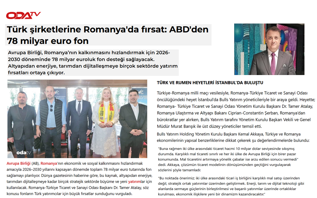 Türkiye-Romanya milli maçı vesilesiyle, Romanya-Türkiye Ticaret ve Sanayi Odası öncülüğündeki heyet İstanbul’da Bulls Yatırım yöneticileriyle bir araya geldi.