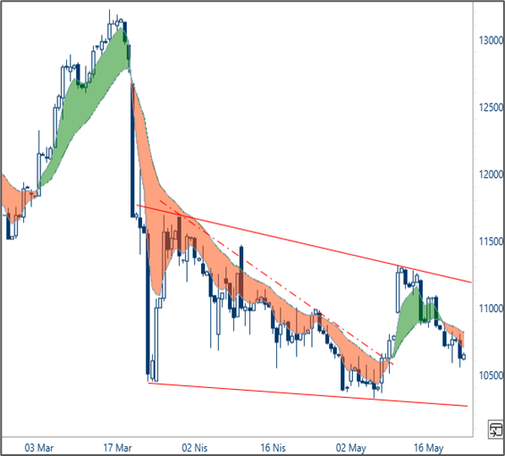 - Teknik olarak değerlendirecek olursak; Haziran Vade Endeks Sözleşmesinin 5 ve 22 günlük ortalamanın altında kapanış gerçekleştirdiğini izliyoruz. Sözleşmede kısa vadeli teknik göstergelerin satış tarafında negatif sinyaller verdiğini görüyoruz. Sözleşmede satıcılı seyrin devam etmesi halinde 10.550 destek olarak izlenebilir. Gün içi olası yükselişlerde 10.850 direnç olarak takip edilebilir.