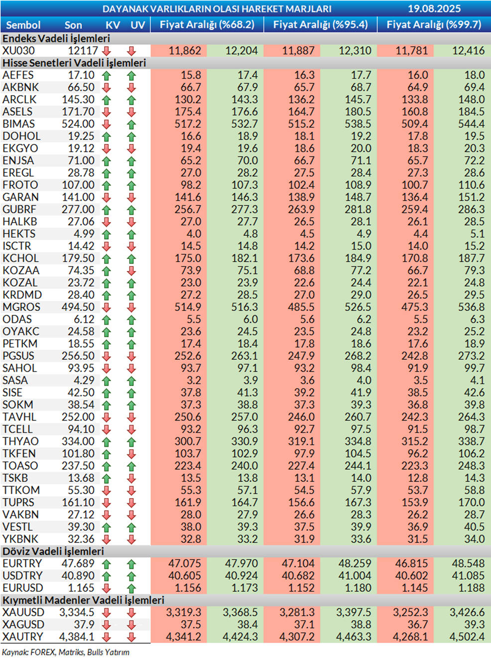 - Teknik olarak değerlendirecek olursak; Ağustos Vade Endeks Sözleşmesinin 5 ve 22 günlük ortalamasının üstünde kapanış gerçekleştirdiğini izliyoruz. Sözleşmede kısa vadeli teknik göstergelerin kararsız sinyaller verdiğini görüyoruz. Alıcılı seyrin devam etmesi halinde sırasıyla 12,300 direnç olarak izlenebilir. Gün içi olası geri yükselişlerde 12,130 destek olarak takip edilebilir.