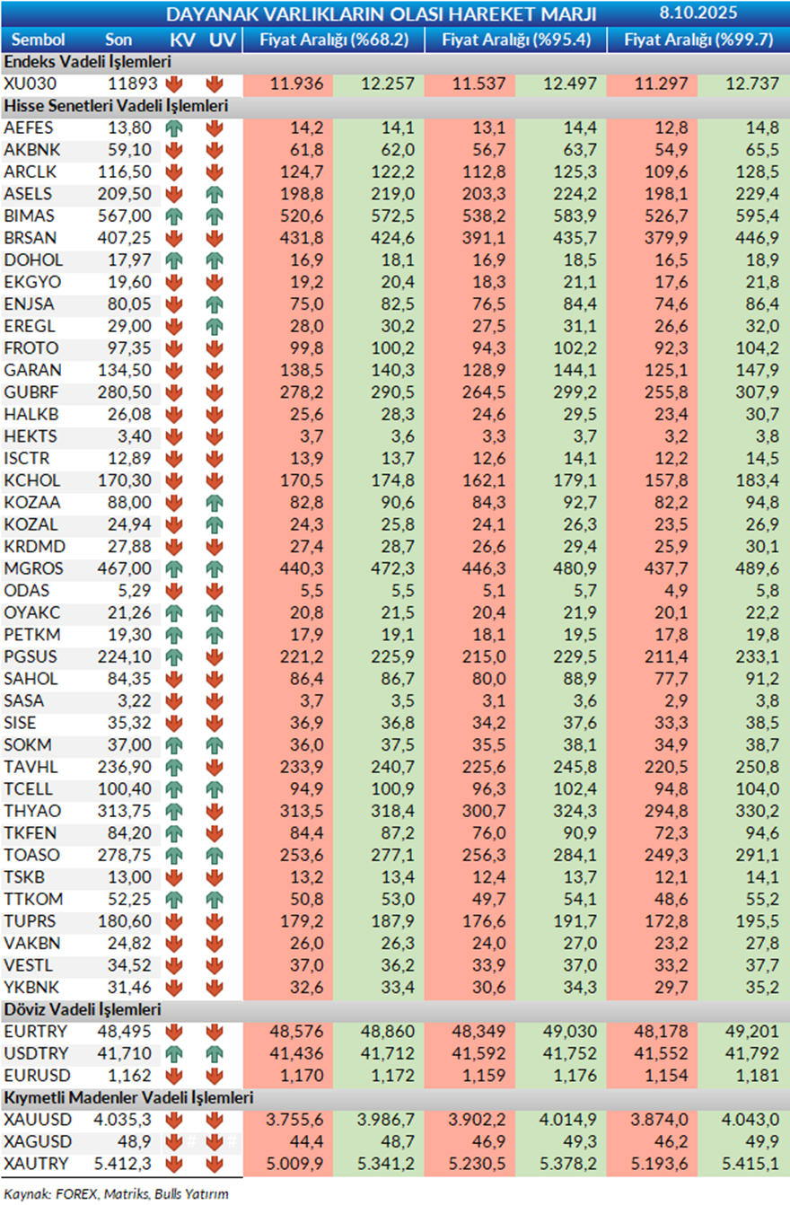 07/10/2025 Net Pozisyonlar (BIST 30 Ekim Vade) |