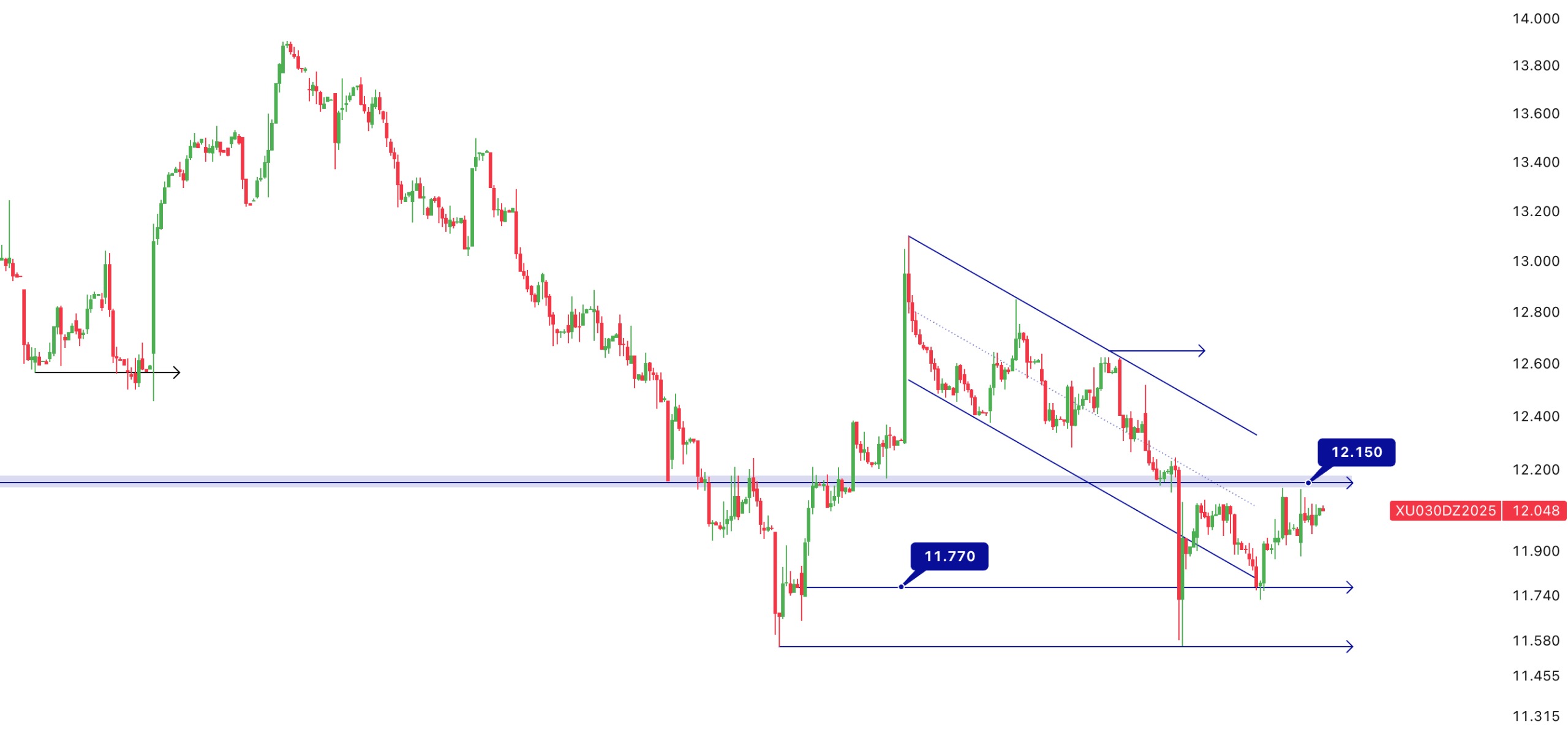 - Aralık Vade Endeks Sözleşmesi 11,881.00 – 12,126.00 aralığında hareket ettiği günü %0.24 değer kazancıyla 12.013.00 puan seviyesinden tamamladı.