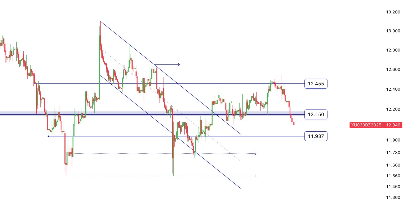 - Teknik olarak değerlendirecek olursak; Aralık Vade Endeks Sözleşmesinin 5 ve 22 günlük ortalamanın altında kapanış gerçekleştirdiğini izliyoruz. Sözleşmede kısa vadeli teknik göstergelerin satış yönünde sinyaller verdiğini görüyoruz. Satıcılı seyrin devam etmesi halinde sırasıyla 11.937 ve 11.769 destek olarak izlenebilir. Gün içi olası geri çekilmelerde 12.150 destek olarak takip edilebilir.