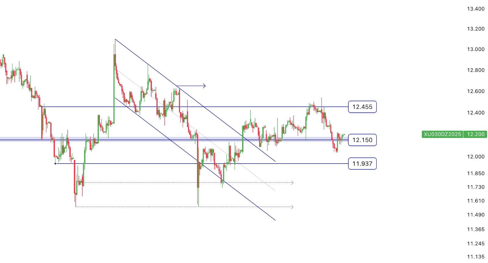 - Aralık Vade Endeks Sözleşmesi 033.00 – 12,221.00 aralığında hareket ettiği günü %0.87 değer kazancıyla 12.177.00 puan seviyesinden tamamladı.