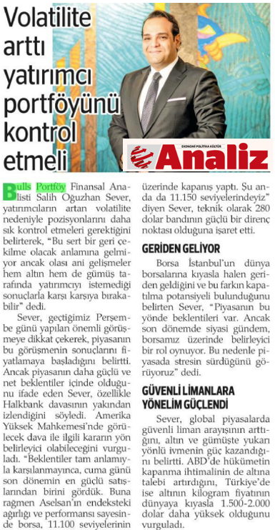 Bulls Portföy Finansal Analisti Salih Oğuzhan Sever, yatırımcıların artan volatilite nedeniyle pozisyonlarını daha sık kontrol etmeleri gerektiğini belirterek, “Bu sert bir geri çekilme olacak anlamına gelmiyor ancak olası ani gelişmeler hem altın hem de gümüş tarafında yatırımcıyı istemediği sonuçlarla karşı karşıya bırakabilir” dedi.