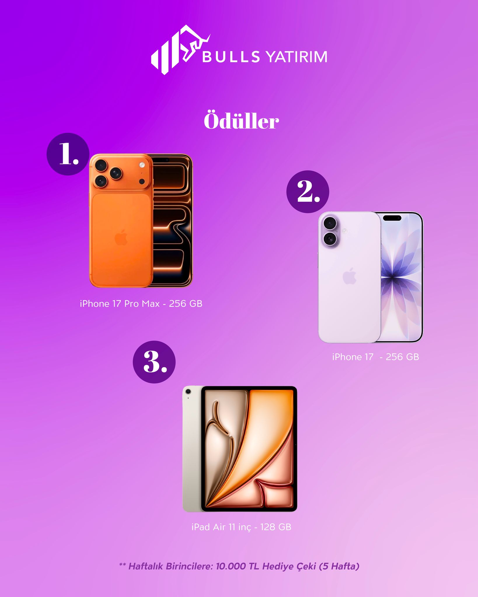 En yüksek getiriyi elde eden ilk 3 kadın yarışmacıya İPhone ve İpad hediye
